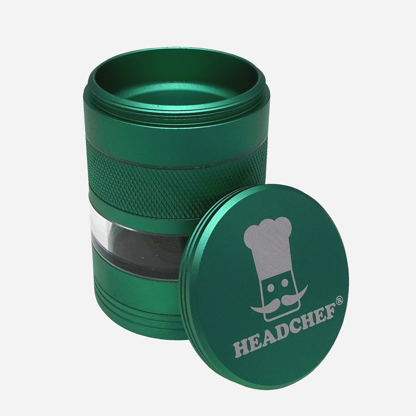 The Vision grinder by Head Chef is a next level grinder with several innovitive features. Each grinder has a storage compartment as the top section allowing you to store your herbs easily on the go. There is a fine micron mesh screen and a clear viewing window so you can your herb as it is ground to perfection.